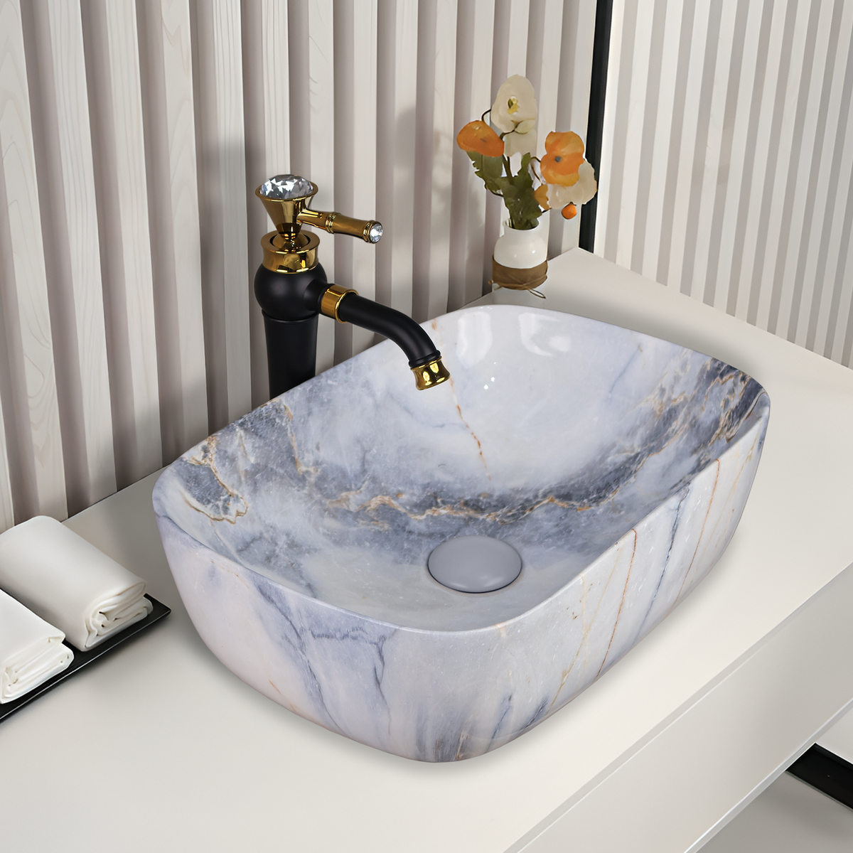 Designer Wash Basin For Bathroom | Ceramic Table Top Wash Basin | Counter Top Wash Basin For Restaurants, Home Living Room |41x31x14cm| Rectangle Shape